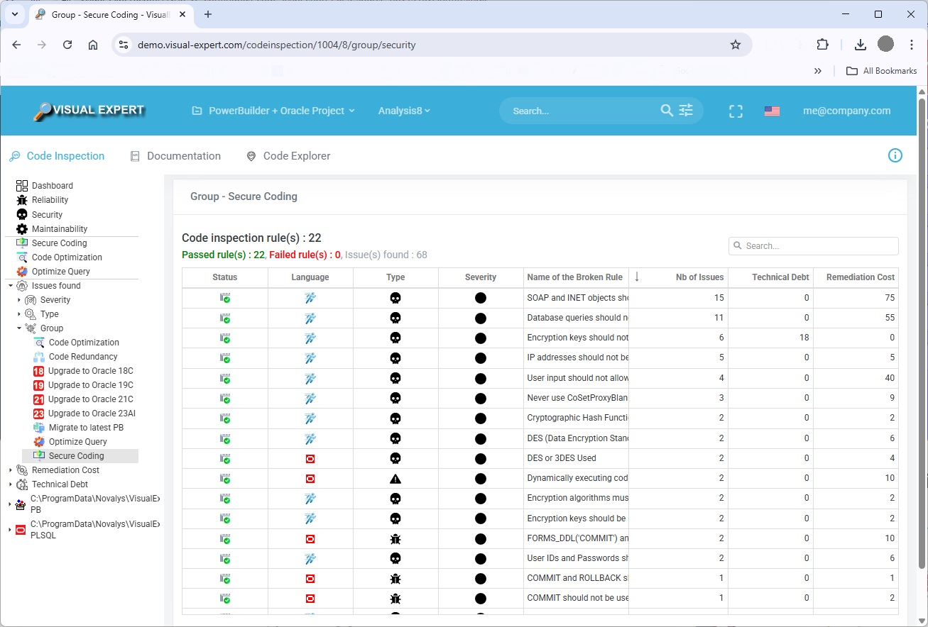 Visual Expert implements a large number of rules, to check your code under various angles and improve its security, stability, and maintainability.