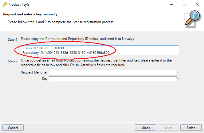 - Clicking Next, a second window will indicate you "Computer Id" and "Repository Id".