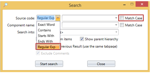 To really speed up the search, specify the string of code you wish to search for in the Source code field and use regular expressions/Match Case to narrow down your search even more.
