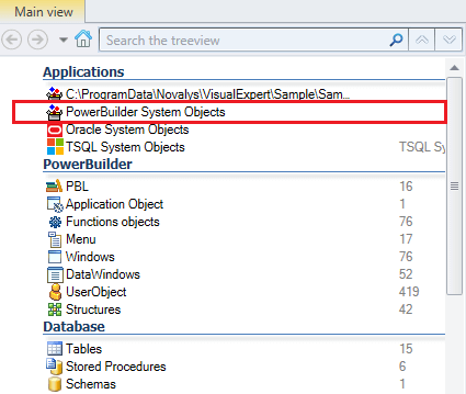 - Sélectionnez l'application virtuelle "PowerBuilder System Objects" dans la vue principale.